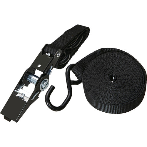 カタログ品番:TSB-255F-BK 特長:●ラチェットバックルを採用しているため、作業性がアップします。●ベルト先端が容易に引っ掛けられる形状です。 用途:●荷崩れ防止。●パイプなどの結束。●棚・トラックの荷台などの荷物の落下防止。 仕様:●色:黒●幅(mm):25●長さ(m):5●厚さ(mm):2●最大使用荷重(kg):70●ラチェット機能:あり●ダブルフックタイプ 材質/仕上:●ベルト:ポリエステル●ラチェットバックル:スチール
