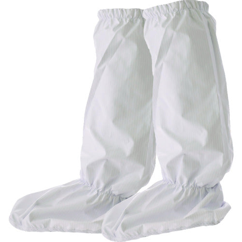 カタログ品番:CR-BC 特長:●ふくらはぎや足回りを薬品や溶剤から防ぐブーツカバーです。 仕様:●色:ホワイト●サイズ:フリー●全長(cm):57.1●寸法(cm):25.4●厚さ:約0.17mm 材質/仕上:●フッ素樹脂コーティング処理済(ポリエステル導電糸入100%) 注意:●クリーンパックではありません。