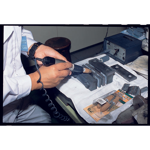 カタログ品番:MO-121P 特長:●一般鋼材から焼入鋼まで幅広く使用できます。●硬度が高く、靭性がやや低いWA砥材で作られている軸付砥石は炭素鋼の焼き入れたものや工具鋼などを目づまりが少なく研削できます。また、一般鋼材、鋳造品など幅広い適応性があります。 用途:●使用工具:マイクログラインダー、電気ドリル。●高硬度WA(赤)軸付砥石。最適:炭素鋼(焼き入れ)、一般鋼材、鍛鋼、鍛工品。適:炭素工具鋼(SK)、合金工具鋼(SKD、SKS)、高速度鋼(SKH)。 仕様:●粒度(#):60●形状:円筒●外径(mm):6●幅(mm):10●軸径(mm):3●軸長(mm):30●最高使用回転数(rpm):88000●適合工具:トラスコ(マイクログラインダー)、ミニター(ミニモ)、ナカニシ(エレクター・マイクロエアグラインダー)、UHT(マイクロハンドソールシリーズ)、日東工器(エアソニック)、ユタニ(ぺンシルグラインダー)、浦和工業(ロータリーハンドピース)●ベッセル(エアマイクログラインダー)、スーパー(マイクロエアグラインダー)、日本精密機械工作(リューター)、ムラキ(ゼムニューモーターφ3mm、ニューモーターφ3mm、マッハモーターφ3mm) 材質/仕上:●軸:ステンレス