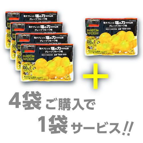 TRUSCO 【※軽税】4+1キャンペーン 塩タブレット 塩の力 500g大袋入 グレープフルーツ味  TBGF-500-PLUS 1 S