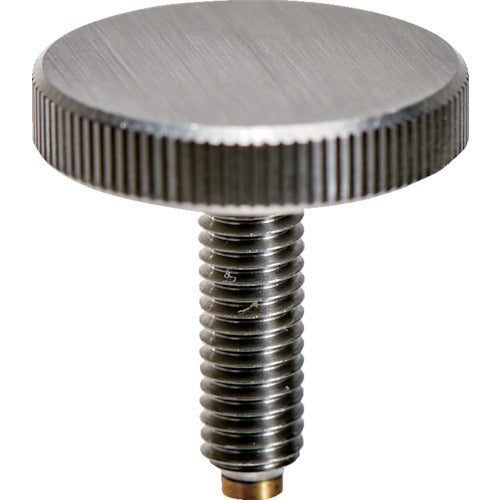 カタログ品番:TKKPB-M3X10S 特長:●先端にパッド付のためワークを傷つけにくいです。●ローレット加工により、すべりにくくスピーディな締付が出来ます。 仕様:●外径(mm):12●ノブ高さ(mm):2.5●ねじ寸法:M3×0.50●ねじ長さ(mm):10●全長(mm):13●黄銅パッド付 材質/仕上:●本体:ステンレス(SUS303)●パッド:黄銅