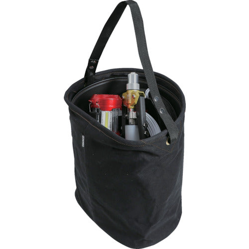 カタログ品番:TADBD25 特長:●D型の防水加工帆布電工バケツです。●D型のため回転しにくい構造です。●底面ベニヤ入り仕様です。 仕様:●色:黒●径(mm):250●幅(mm):263●奥行(mm):220●高さ(mm):250 材質/仕上:●本体:9号防水加工帆布●持手:PPテープ 注意:●アタッチメントは別売りです。●縫製物ですので水を溜めてのご使用はできません。