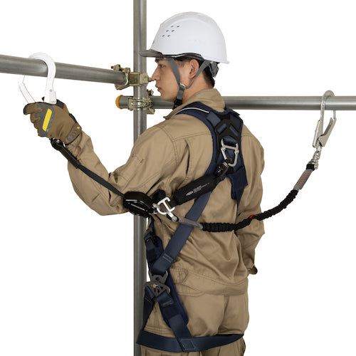 TSUYORON ハーネス胴ベルト兼用ランヤード ダブルランヤード ロック機構付き巻取式EZリトラ・伸縮式ノビロン(BK) TL-EZNV93SV-21KSG-130KGBX 1 本