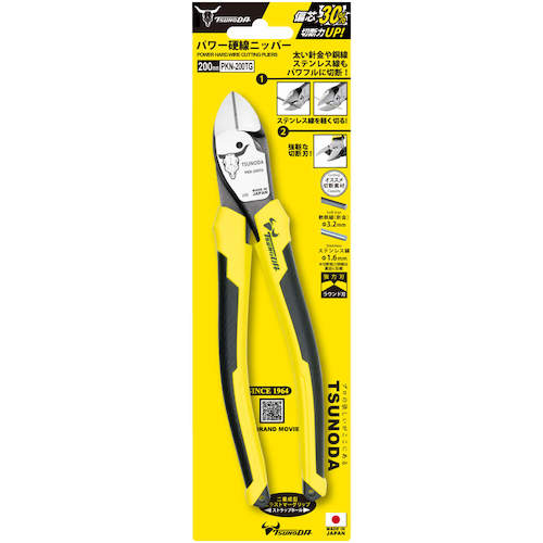 カタログ品番:PKN-200TG 特長:●太い針金や銅線、ステンレス線もパワフルに切断!●強靭な切断刃でステンレス線を軽く切る! 用途:●針金、銅線、ステンレス線、ピアノ線、IV線の切断に。 仕様:●全長(mm):214●刃表面形状:ラウンド刃●切断能力(mm)軟鉄線:φ3.2●切断能力(mm)ステンレス:φ1.6●切断能力(mm)ピアノ線:φ1.2●切断能力(mm)銅線:φ5.0●切断能力(mm)VVF線:2.6×3心●強力刃●ラウンド刃 材質/仕上:●本体:特殊合金鋼●柄被覆:エラストマー樹脂 注意:●非絶縁工具です。●電源を切ってお使い下さい。●使用用途以外には使用しないで下さい。●その他商品台紙注意事項参照。