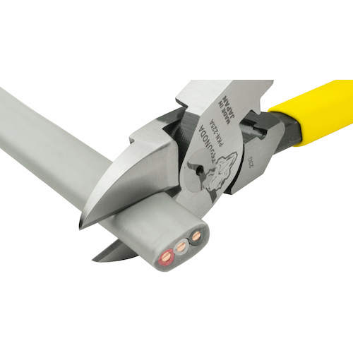 カタログ品番:PKN-225A 特長:●長い強力刃と偏芯で強力な切断が可能!●ケーブルも針金も強力に切断! 仕様:●全長(mm):220●刃表面形状:ラウンド刃●切断能力(mm)軟鉄線:φ4.0●切断能力(mm)ステンレス:φ1.8●切断能力(mm)軟銅線:φ5.0●切断能力(mm)VVF線:2.6×3心●強力刃●ラウンド刃●簡易圧着機能付き 材質/仕上:●本体:特殊合金鋼●柄被覆:塩化ビニール 注意:●非絶縁工具です。電源を切ってお使い下さい。●使用用途以外には使用しないで下さい。●その他商品台紙注意事項参照してください。