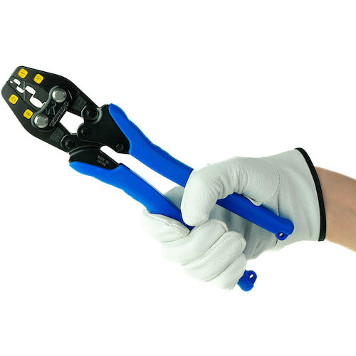 カタログ品番:TPH-8 特長:●より軽い力で圧着が可能となるよう、最も倍力率が高くなる位置関係を構造力学計算した二重テコのトグル機構を採用。●仮押さえをしても端子のつぶれが最小限で、電線挿入がスムーズにでき圧着前に位置を確認することができる。●圧着マークはしっかりと浮かび上がり、クッキリと見える。●グリップは太く、圧着時にしっかりと力を入れることができ、手が痛くならないエラストマー樹脂。 用途:●絶縁被覆付閉端接続子用の圧着作業に 仕様:●全長(mm):260●圧着端子:CE1、2、5、8●圧着端子([[MM2]])絶縁被覆付閉端接続子用:CE1、2、5、8●圧着工具 絶縁被覆付閉端接続子用 材質/仕上:●本体:機械構造用合金鋼●グリップ:エラストマー樹脂●焼入れ:頭部42〜46HRC ハンドル部46〜49HRC 注意:●非絶縁工具です。●電源を切ってお使い下さい。●使用用途以外には使用しないで下さい。●その他商品台紙注意事項参照。