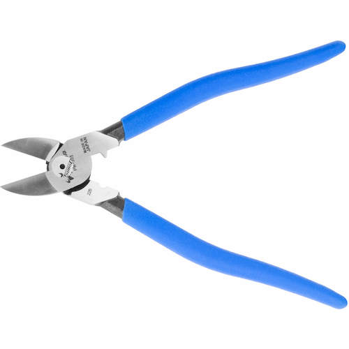 カタログ品番:PW-305 特長:●従来品に比べ、刃元(作用点)からカシメ(支点)までの距離を短くしたことで、切断時の荷重(握力)が約30%軽減しています。●偏芯テコの効果により、長時間の作業による負担を軽減します。●作業効率が大幅に向上します。 用途:●IV線・VA線など電気工事で必要な線材の切断に。 仕様:●全長(mm):220●刃表面形状:ラウンド刃●切断能力(mm)軟鉄線:φ3.2●切断能力(mm)VA線:2.6×3芯●切断能力(mm)VA線・VVF線:2.6×3芯●切断能力(mm)銅線:φ5.0●切断能力([[MM2]])IV線:φ22●ラウンド刃●薄刃●圧着機能付 材質/仕上:●特殊合金鋼●グリップ:塩化ビニール 注意:●非絶縁工具です。電源を切ってお使い下さい。●使用用途以外には使用しないで下さい。●その他商品台紙注意事項参照してください。