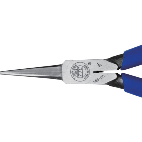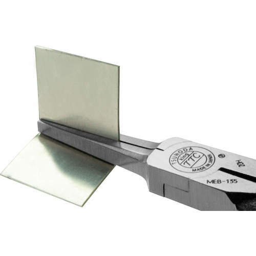 カタログ品番:MEB-135 特長:●平型で曲げる、つかむ、折り曲げる、ひねる作業に最適です。 仕様:●全長(mm):136●厚さ(mm):7●A(mm):32●ばね付 材質/仕上:●機械構造用炭素鋼●グリップ:塩化ビニール 注意:●非絶縁工具です。電源を切ってお使い下さい。●使用用途以外には使用しないで下さい。●その他商品台紙注意事項参照。