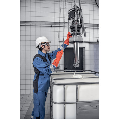 カタログ品番:6018868 特長:●多くの化学物質に対し良好な耐性を発揮します。●アセトンに優れた耐性があり、様々な洗剤、接着剤、溶剤にお使いいただけます。 用途:●化学●印刷●塗装●金属加工●造船 仕様:●色:オレンジ●サイズ:M●全長(cm):32.0●手のひら周り(cm):20.4●中指長さ(cm):7.7●厚さ(mm):0.5●EN388:2016 ( 3121X)●EN407(X1XXX)●EN ISO 374-1:2016/Type A(ACJKLMNOPST) 材質/仕上:●繊維部:両面編みコットン●コーティング:ニトリル・ブタジエン・ゴム(NBR)