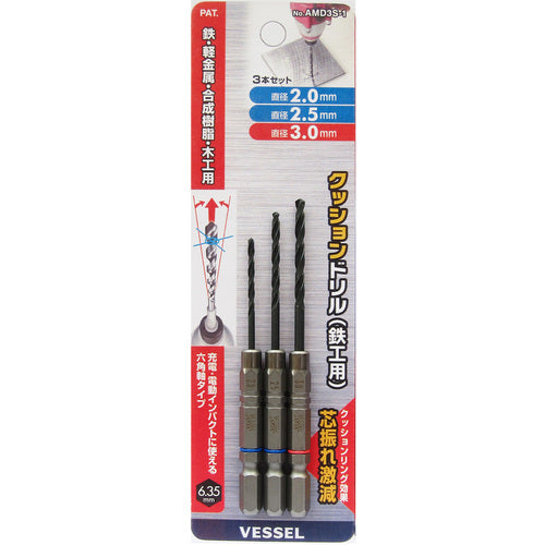 VESSEL クッションドリル鉄工用 3本組み AMD3S−1 AMD3S-1 1 S