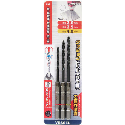 VESSEL クッションドリル鉄工用 3本組み AMD3S−2 AMD3S-2 1 S
