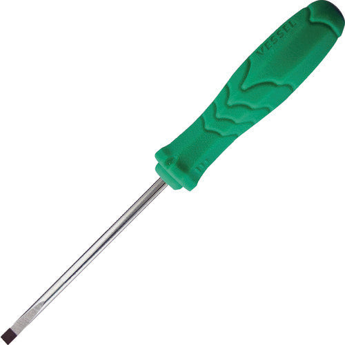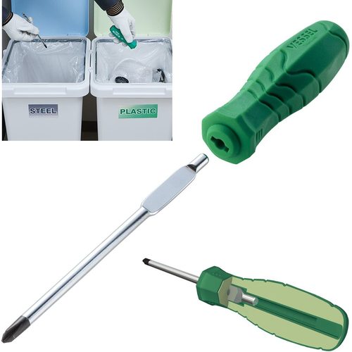 カタログ品番:560-4-75 特長:●軸とグリップを分別して廃棄できる、環境に配慮したドライバーです。●内部にはリサイクル樹脂を使用しています。●グリップ表面のエラストマー樹脂が手にやさしくフィットし、トルクの伝達も向上します。 用途:●あらゆるネジ締め作業に。 仕様:●刃先:[[−]]4●軸長(mm):75●全長(mm):153●グリップ径(mm):19.8●軸径(mm):4.0●先端:マグネット入り●クロームバナジューム鋼、全身焼入。●先端は高精度のブラックポイント加工。●軸部は六価クロムフリー。環境負荷物質を含まない表面メッキ仕上げ。●マグネット入り 材質/仕上:●軸:クロムバナジウム鋼●グリップ:ポリプロピレン+エラストマーの二層構造 注意:●貫通ドライバーではありません。●ハンマーでたたくと軸が抜けなくなったり、変形・破損の原因となります。