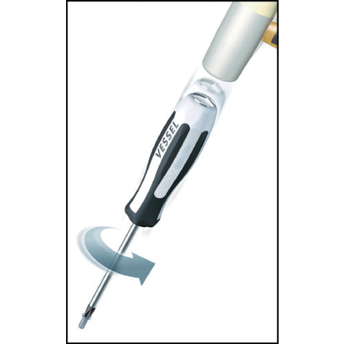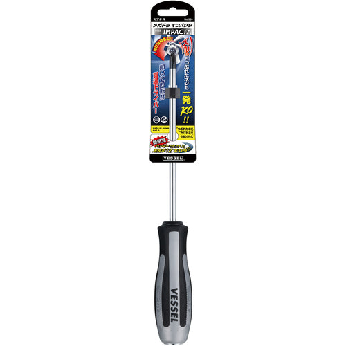 カタログ品番:980-2-150 特長:●さびたねじ、つぶれたねじの取りはずしに使用できます。●普通ドライバーとしても使用できます。●ハンマーで叩くと刃先が瞬間的に12°逆回転します。●十字穴がつぶれたネジや、錆びたネジなどを緩めることが出来ます。●グリップには油作業に理想のノンスリップ加工。●軽量化を実現。通常の貫通ドライバー感覚でネジ締めが行えます。●抜群の耐久性。 用途:●普段はドライバーとして使用ができて、十字穴のつぶれたネジや錆びたネジなどを緩めたい時はハンマーで叩くと瞬間的に刃先が逆回転する構造設計を行いました。プロユーザーから一般ユーザーまで幅広い使われ方に対応できる貫通ドライバーです。 仕様:●全長(mm):263●刃先:[[+]]2●軸長(mm):150●軸●先端:マグネット入り●ブラックポイント加工●全身焼入●グリップカラーは精悍で重厚感のあるメタルカラー。●ナット部クロムメッキ仕上げで高級感がアップ。 材質/仕上:●軸:クロムバナジウム鋼●グリップ:ポリプロピレン、エラストマー