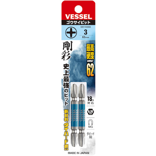 VESSEL 剛彩ビット 2本組 (両頭) +3×65mm GS143065 1 PK