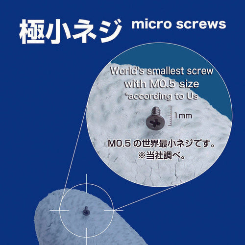 カタログ品番:TD-56S 特長:●超極小ネジ用の精密ドライバーが入ったセットです。●指に優しく、調整作業で使いやすいクッショングリップで、樹脂のグリップを使いやすい位置にスライドできます。●早回しに便利な回転キャップ&ローレット加工です。●錆びにくいステンレス製です。 用途:●スマートフォン等の精密機器のメンテナンスに。 仕様:●セット内容:[[−]]0.7、0.9、[[+]]0、00、000、0000●セット内容(本):6●セット内容(点):6●ハンドルサイズ(mm):80●全長(mm):[[+]]0…106、[[+]]00…104、[[+]]000…100、[[+]]0000…97、[[+]]0.9…90、[[+]]0.7…90●刃先:[[+]]0、[[+]]00、[[+]]000、[[+]]0000、[[+]]0.9、[[+]]0.7●軸長(mm):[[+]]0…26、[[+]]00…24、[[+]]000…20、[[+]]0000…17、[[+]]0.9…10、[[+]]0.7…10 材質/仕上:●本体:ステンレス鋼、ポリプロピレン●軸:特殊合金鋼●クッショングリップ:エラストマー セット内容/付属品:●(+)0、(+)00、(+)000、(+)0000、(+)0.9、(+)0.7 注意:●作業時は、保護メガネを着用してください。●正しい用途・サイズ・使い方を確かめてご使用ください。●電気作業ではショート事故・感電にご注意ください。●過負荷はネジの破損やけがの原因となります。●家庭ではお子様に注意して保管してください。