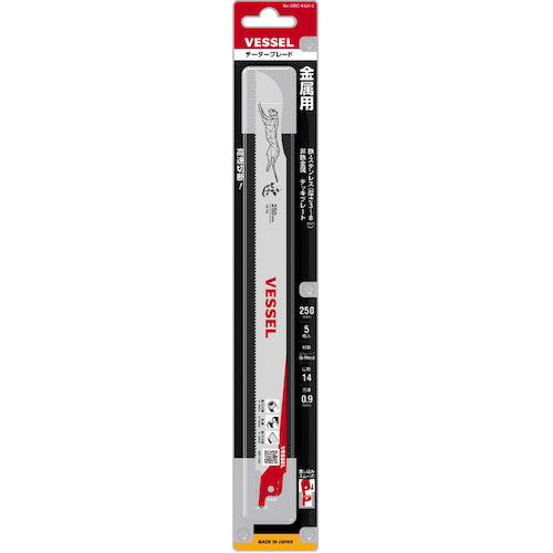 カタログ品番:SBC-1425-5 特長:●各種金属を高速切断できます。●キワ切りができるしなり刃です。●コバルトハイス鋼とバネ鋼のバイメタルを使用、刃の耐久性に優れています。●ホルダー装着時に引っ掛かりがない角R形状です。●用途がわかるアイコンを表示しています。●製品情報にアクセスできるQRコードを印字しています。 用途:●各種金属の切断に。●水道管の改修、デッキプレートの切断、電線管の撤去などに。 仕様:●山数:14●全長(mm):250●厚さ(mm):0.9●有効刃長(mm):230●切断能力(mm)非鉄金属鋼材:3〜8●切断能力(mm)ステンレス:3〜8●切断能力(mm)ステンレス管・鉄 :3〜8●刃先の硬度920HV 材質/仕上:●バイメタルハイス鋼