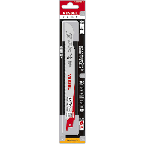 カタログ品番:SBC-1820-10 特長:●各種金属を高速切断できます。●キワ切りができるしなり刃です。●コバルトハイス鋼とバネ鋼のバイメタルを使用、刃の耐久性に優れています。●ホルダー装着時に引っ掛かりがない角R形状です。●用途がわかるアイコンを表示しています。●製品情報にアクセスできるQRコードを印字しています。 用途:●各種金属の切断に。●水道管の改修、デッキプレートの切断、電線管の撤去などに。 仕様:●山数:18●全長(mm):200●厚さ(mm):0.9●有効刃長(mm):180●切断能力(mm)非鉄金属鋼材:1.5〜4●切断能力(mm)ステンレス:1.5〜4●切断能力(mm)ステンレス管・鉄 :1.5〜4.0●刃先の硬度920HV 材質/仕上:●バイメタルハイス鋼