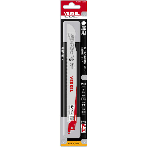 カタログ品番:SBC-2420-5 特長:●各種金属を高速切断できます。●キワ切りができるしなり刃です。●コバルトハイス鋼とバネ鋼のバイメタルを使用、刃の耐久性に優れています。●ホルダー装着時に引っ掛かりがない角R形状です。●用途がわかるアイコンを表示しています。●製品情報にアクセスできるQRコードを印字しています。 用途:●各種金属の切断に。●水道管の改修、デッキプレートの切断、電線管の撤去などに。 仕様:●山数:24●全長(mm):200●厚さ(mm):0.9●有効刃長(mm):180●切断能力(mm)非鉄金属鋼材:〜3●切断能力(mm)ステンレス:〜3●切断能力(mm)ステンレス管・鉄 :〜3.0●刃先の硬度920HV 材質/仕上:●バイメタルハイス鋼
