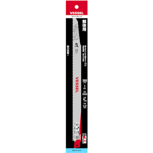 カタログ品番:SBR-0430-1 特長:●解体作業を重視した、厚刃仕様になっています。●釘入り木材などの複合素材に最適です。●コバルトハイス鋼とバネ鋼のバイメタルを使用、刃の耐久性に優れています。●ホルダー装着時に引っ掛かりがない角R形状です。●用途がわかるアイコンを表示しています。●製品情報にアクセスできるQRコードを印字しています。 用途:●各種解体作業、ALCの切断などに。 仕様:●山数:10&14●全長(mm):300●厚さ(mm):1.27●有効刃長(mm):280●切断能力(mm)非鉄金属鋼材:3〜13●切断能力(mm)ステンレス:3〜13●切断能力(mm)ステンレス管・鉄 :3.0〜13.0●切断(木材・塩ビ管):〇●刃先の硬度900HV 材質/仕上:●バイメタルハイス鋼
