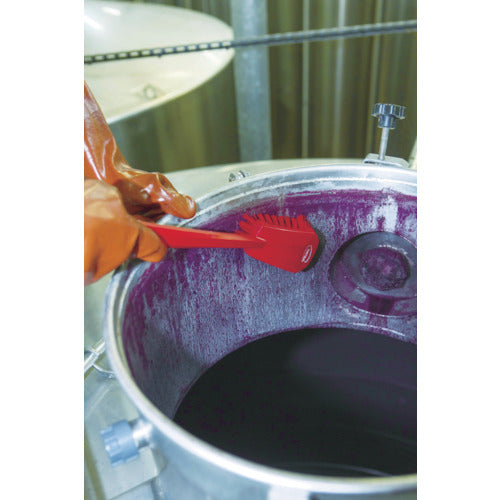 カタログ品番:41868 特長:●手の届きにくい場所の洗浄に適したブラシです。 用途:●深型の鍋や容器の洗浄に。 仕様:●色:パープル●縦(mm):400●横(mm):70●厚さ(mm):60●耐熱温度(℃):121℃●毛質:ハード●毛丈(mm):36●線径(mm):0.5 材質/仕上:●ボディー部:ポリプロピレン(PP)●フィラメント:ポリエステル 注意:●ブラシの毛を機械や道具類に挟まないよう注意してください。