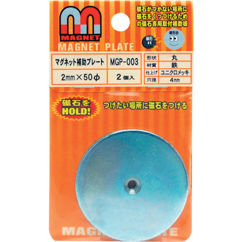 カタログ品番:MGP-003 特長:●磁石がつかない場所に磁石をつける為の専用金属板です。 用途:●各種磁石の取り付け用補助プレートとして。 仕様:●穴径(mm):4 材質/仕上:●鉄ユニクロメッキ