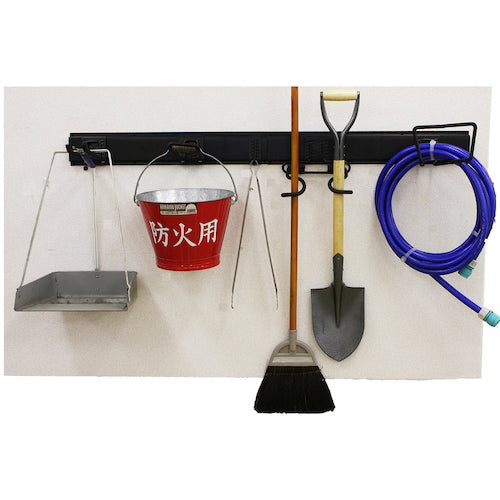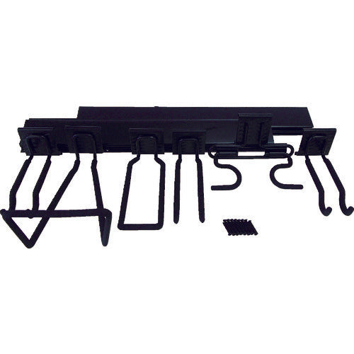 カタログ品番:WW101 特長:●収納に困っていた、ほうき・工具・ シャベル・ ホース・ 自転車までお客様の用途に応じて収納できる9点セット品です。 仕様:●色:ブラック●幅(mm):610X2●品名:キット●セット内容(個):9●フック耐荷重:10kg●レール1本耐荷重:40kg●セット数(点):9 材質/仕上:●スチール セット内容/付属品:●フック5種類(各1個)●フック1種類(2個)●レール610mm(2本) 注意:●中空壁、石膏ボード、土壁、しっくい等のもろい壁ビスのきかない場所には取り付けできません。