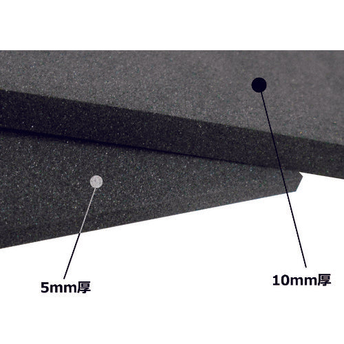カタログ品番:PES-02 特長:●弾力性、反発力、引き裂き強度、耐摩耗性に優れたスポンジシートです。●天然ゴムの欠点である臭い・縮み・色移行を解消した発砲素材です。 用途:●防音・防振・キズ防止に。 仕様:●色:黒●厚さ(mm):5●幅(mm):200●長さ(mm):200●使用温度範囲(℃):0〜50 材質/仕上:●高弾性架橋ポリオレフィンフォーム