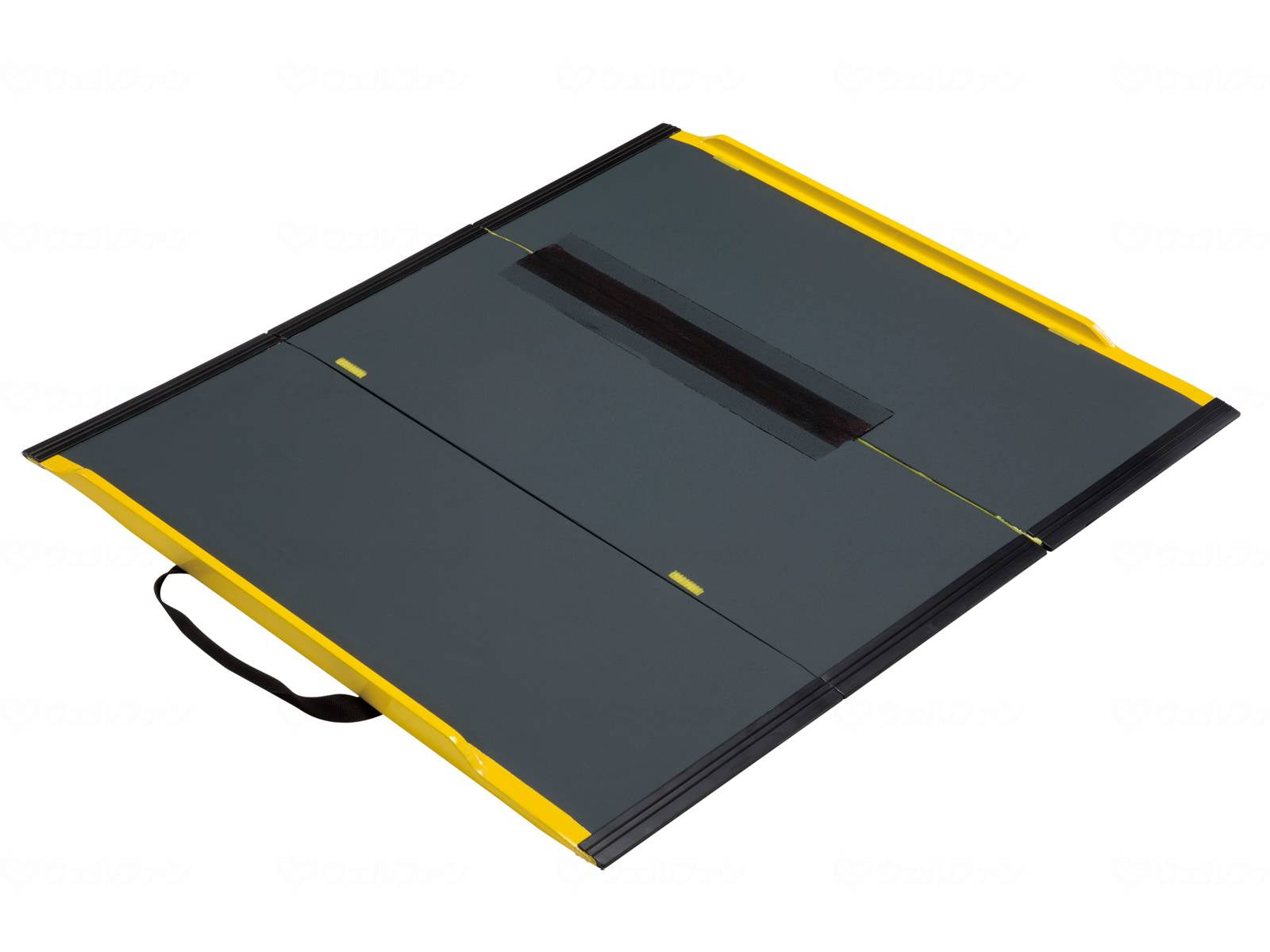 3つ折りは最大82cmで余裕の走行面。店舗から施設、家庭まであらゆるシーンでの使用に対応。ベビーカーや歩行者の方が安全に段差を乗り越えるシーンにも使用可。