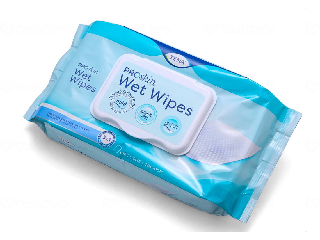 TENAウェットワイプは1枚で保清・保湿・保護ができる全身・おしり用使い捨てウェットタオルです。