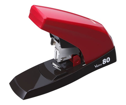 2枚から80枚までとじられる卓上ホッチキス。材質:金属部/鉄(SPCC、SUS)、プラスチック部/再生ABS、POM、PC、TPE 色:レッド