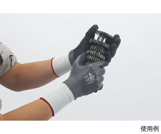 グラスファイバー糸を組み合わせた独自の繊維「DURACoil(デュラコイル)」と高強度ポリエチレン糸を採用しています。 独自の繊維技術DURACoil(デュラコイル)テクノロジーにより、耐切創性と肌触りの良さ、高い作業性を実現しています。 ニトリルゴムをコーティングしているため、油に強く、摩耗強度にも優れています。 手のひらには発泡ニトリルゴムの特殊スベリ止め層をコーティングしており、高いスベリ止め効果を発揮します。 繊維部分は編み目が細かく縫い合わせのない、独自の13ゲージ・シームレス編み手袋です。 洗濯により繰り返し使用できます。 裾部分は、ほつれを防ぐオーバーロック加工を施しています。 EN 388:2016規格 耐切創レベル X /C <参考データ>EN 388:2003規格 耐切創レベル 4サイズ:M カラー:グレー 素材:樹脂部/合成ゴム(ニトリルゴム)、繊維部/ポリエチレン、ガラス繊維(グラスファイバー)、ポリエステル、その他