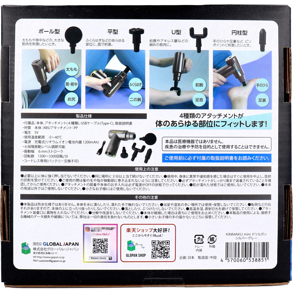 軽量なのにパワフル! 4種類のアタッチメントが体のあらゆる部位にフィットします!